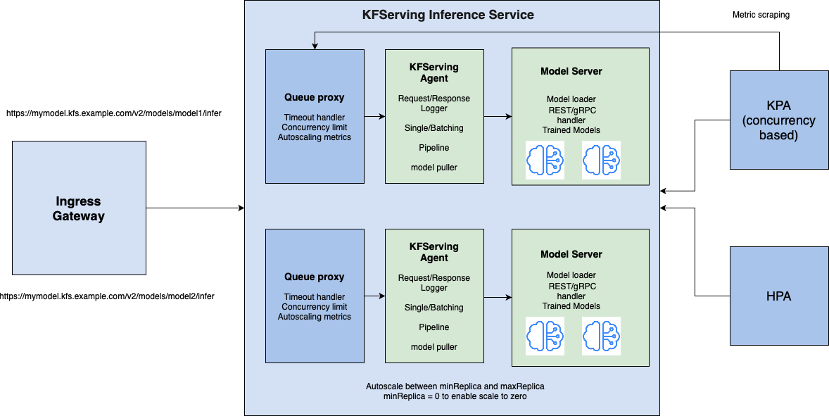 Multi-model serving is an alpha feature added in 0.5 to increase KFServing’s scalability. To learn more about multi-model serving motivations and implementation deatils, dive into the details in KFServing github. Please assume that the interface is subject to change. The experimental feature must be enabled from the inference service configmap.
