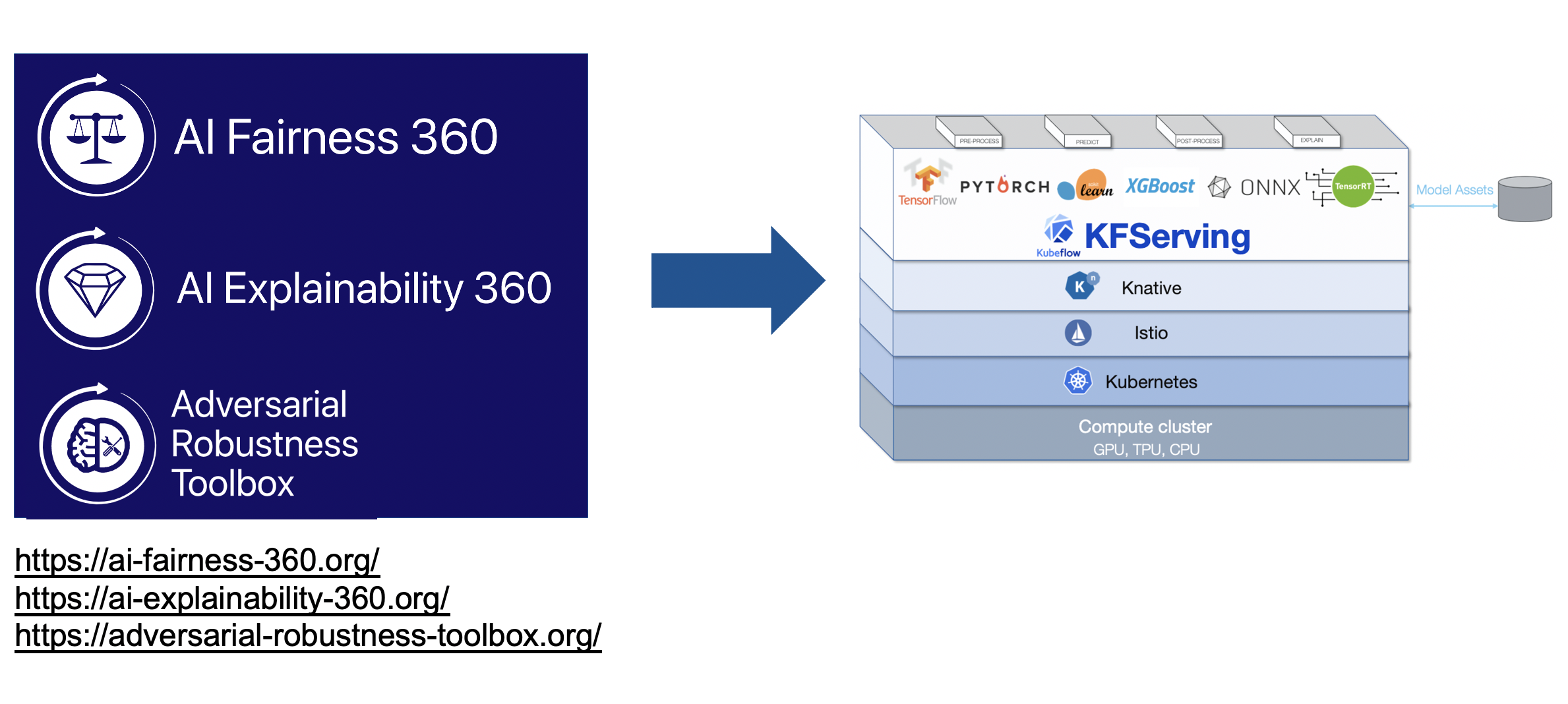 Trust and responsibility should be core principles of AI. The LF AI & Data Trusted AI Committee is a global group working on policies, guidelines, tools and projects to ensure the development of trustworthy AI solutions, and we have integrated LFAI AI Explainability 360, Adversarial Robustness 360 in KFServing to provide production level trusted AI capabilities. Please find more details on these integration in the following links